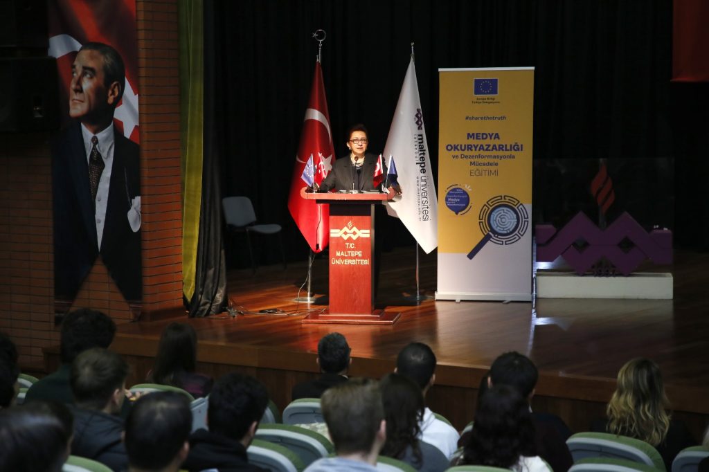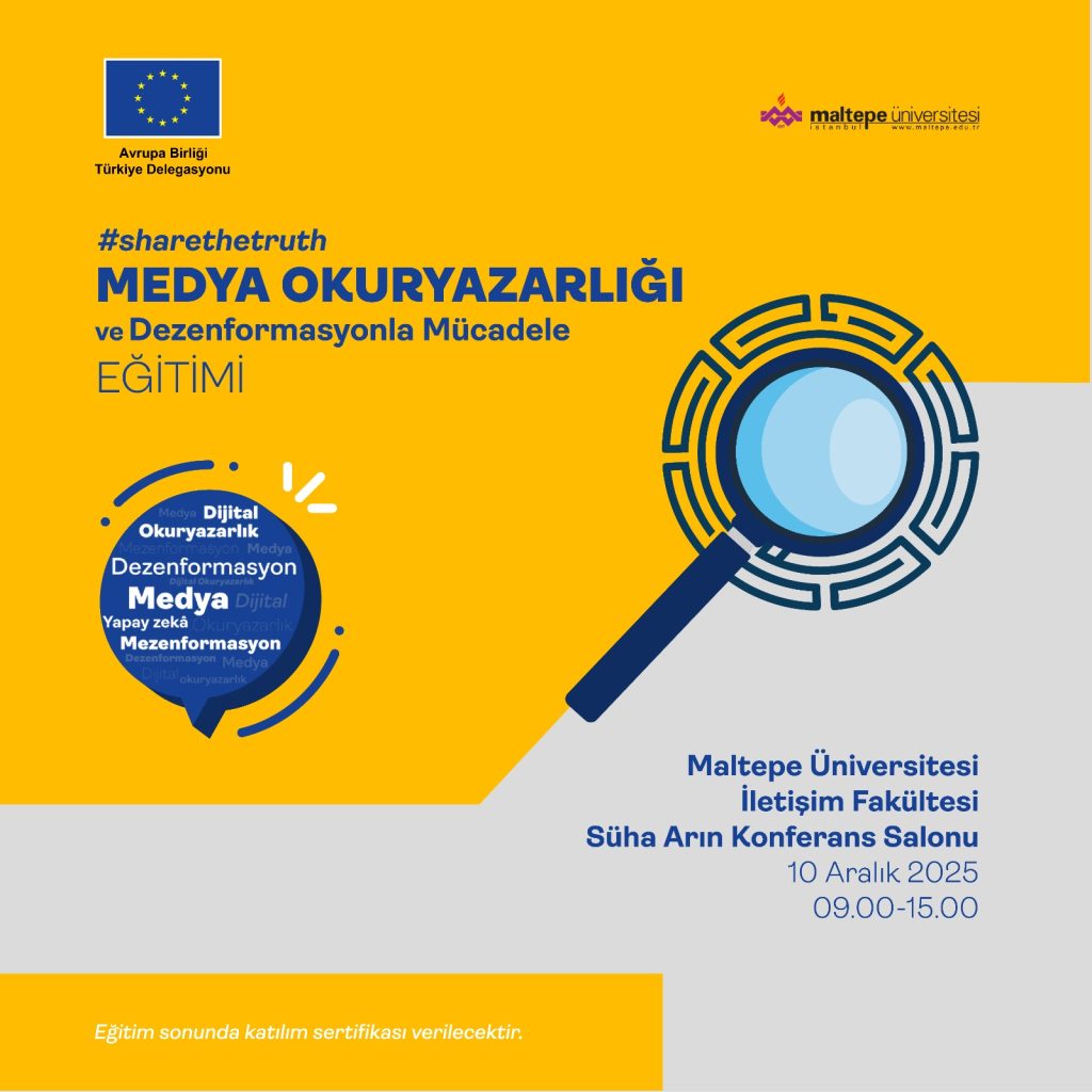 Avrupa Birliği (AB) Türkiye Delegasyonu’nun desteğiyle düzenlenen “Medya Okuryazarlığı ve Dezenformasyonla Mücadele Eğitimi”, dijital çağda bilgi denizinde kaybolmamak için kritik yetkinlikleri gençlerle buluşturdu. 10 Aralık’ta Maltepe Üniversitesi Suha Arın Konferans Salonu’nun dolup taştığı etkinlik, medya alanının çehresini değiştiren kavramları akademisyenlerle pratik katılımcıların buluşmasına dönüştürdü.